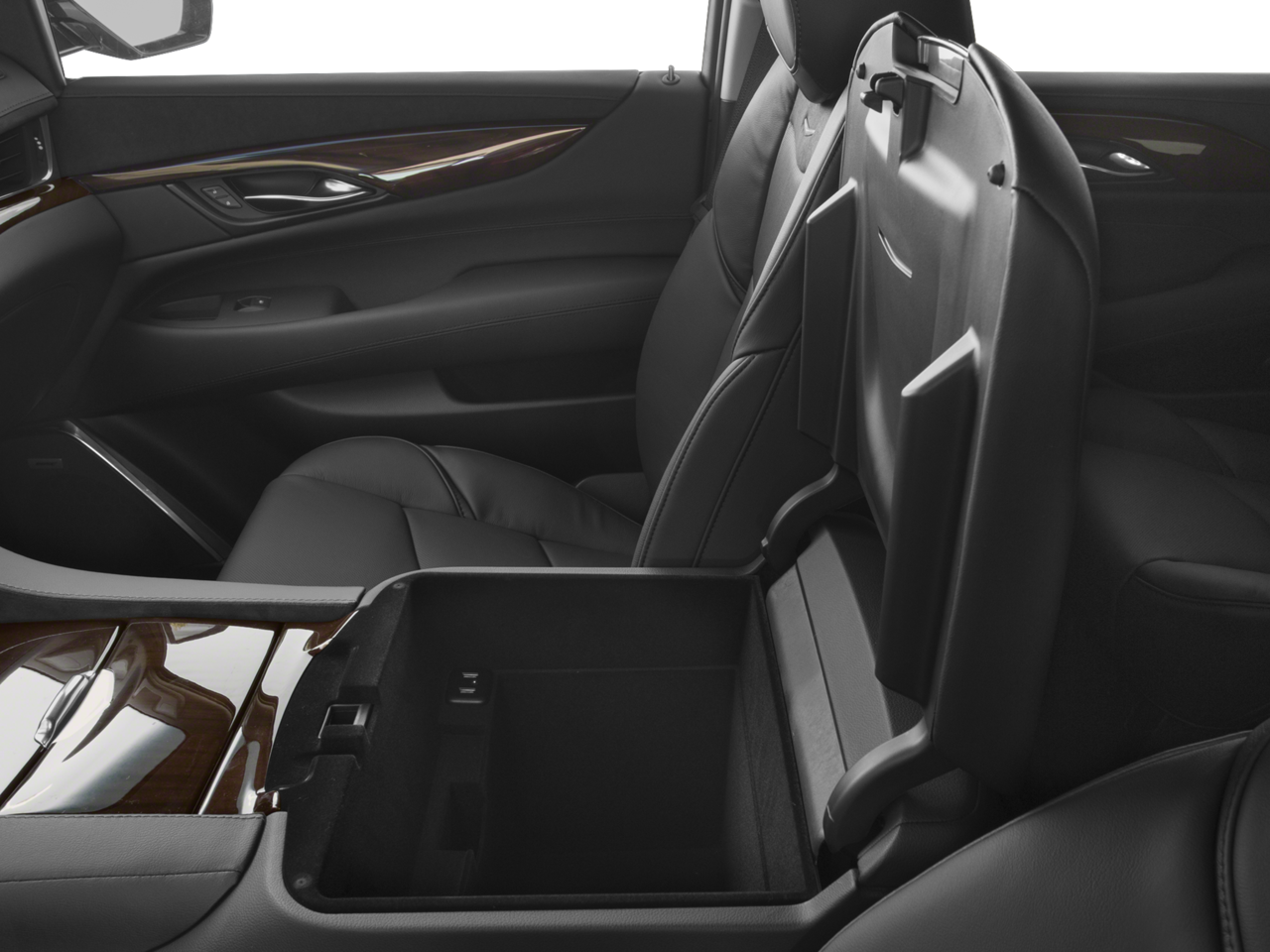 - Console, floor with covered storage, large and small storage bins, dual cup holders, electronic climate controls and second row heated seat controls (inside console: auxiliary power outlet, two USB ports and auxiliary audio port), 110-volt outlet and auxiliary power outlet on the backside of console
