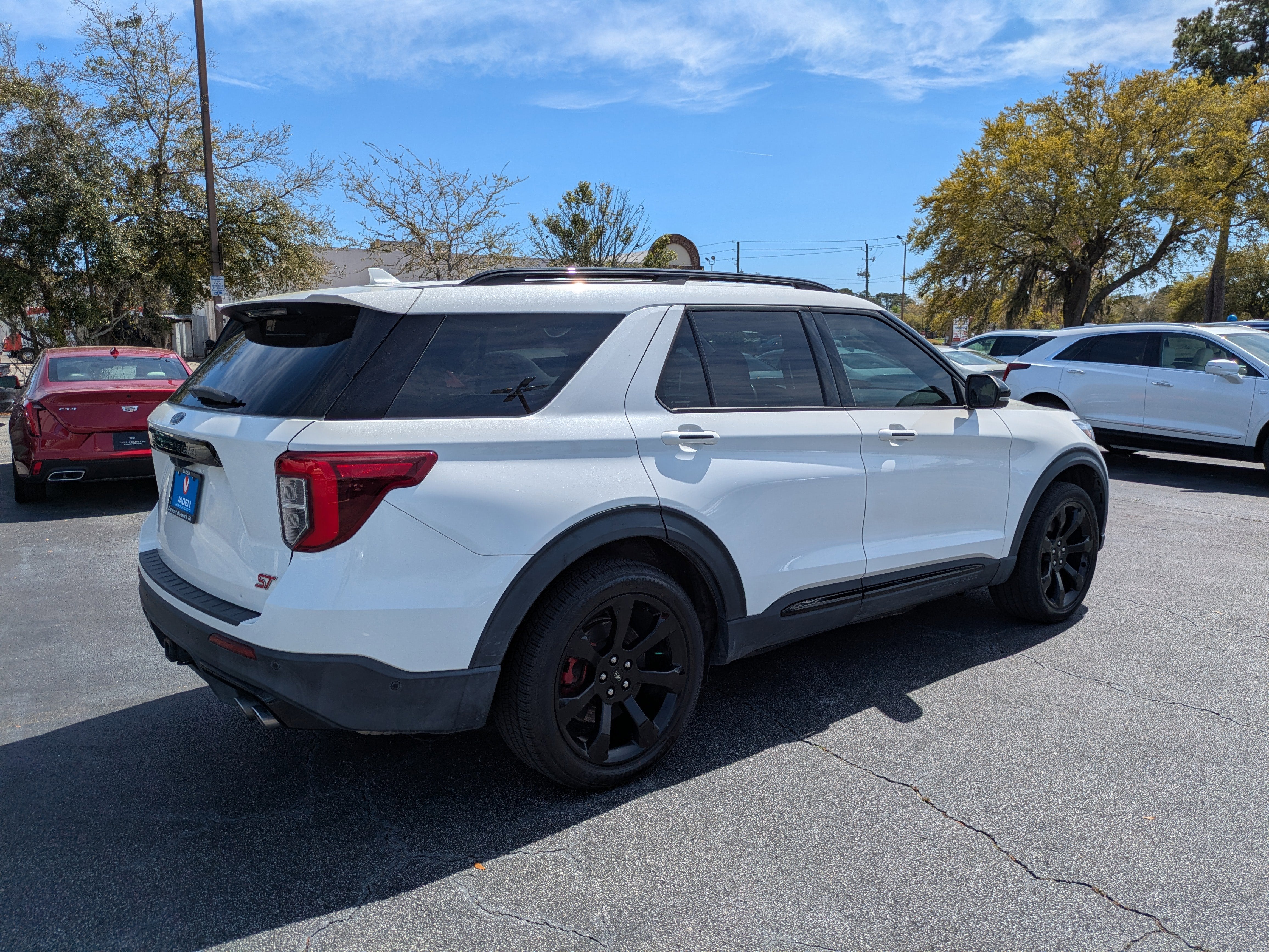 Vaden is pleased to offer this Star White Metallic Tri-Coat 2020 Ford Explorer ST with Ebony Leather... Beautifully equipped with Equipment Group 400A, Premium Technology Package (10.1" LCD Capacitive Portrait Touchscreen, 2 Additional Speakers, and Leather Htd/Ventilated Sport Captain's Chairs), ST High-Performance Pack (Wheels: 21" Aluminum), 4WD, 12 Speakers, 20" Machined Aluminum w/Painted Pockets Wheels, 3.58 Non-Limited-Slip Rear Axle Ratio, 3rd row seats: bench, 4-Wheel Disc Brakes, ABS brakes, Air Conditioning, Alloy wheels, AM/FM radio: SiriusXM, Auto High-beam Headlights, Auto-dimming door mirrors, Auto-dimming Rear-View mirror, Automatic temperature control, Brake assist, Bumpers: body-color, Compass, Delay-off headlights, Driver door bin, Driver vanity mirror, Dual front impact airbags, Dual front side impact airbags, Electronic Stability Control, Emergency communication system: SYNC 3 911 Assist, Exterior Parking Camera Rear, FordPass Connect, Four wheel independent suspension, Front anti-roll bar, Front Bucket Seats, Front Center Armrest, Front dual zone A/C, Front fog lights, Front reading lights, Fully automatic headlights, Garage door transmitter: HomeLink, Heated door mirrors, Heated front seats, Heated rear seats, Heated steering wheel, Illuminated entry, Knee airbag, Leather steering wheel, Low tire pressure warning, Memory seat, Navigation System, Occupant sensing airbag, Outside temperature display, Overhead airbag, Overhead console, Panic alarm, Passenger door bin, Passenger vanity mirror, Performance Front & Rear Brakes, Power door mirrors, Power driver seat, Power Liftgate, Power passenger seat, Power steering, Power windows, Radio data system, Radio: B&O Sound System by Bang & Olufsen, Rain sensing wipers, Rear air conditioning, Rear anti-roll bar, Rear reading lights, Rear window defroster, Rear window wiper, Remote keyless entry, Roof rack: rails only, Security system, Speed control, Speed-sensing steering, Speed-Sensitive Wipers, Split folding rear seat, Spoiler, Sport steering wheel, Steering wheel memory, Steering wheel mounted audio controls, SYNC 3 Communications & Entertainment System, SYNC 3/Apple CarPlay/Android Auto, Tachometer, Telescoping steering wheel, Tilt steering wheel, Traction control, Trip computer, Turn signal indicator mirrors, Twin Panel Moonroof, Variably intermittent wipers, Ventilated front seats, and Voice-Activated Touchscreen Navigation System! Approved customer communicated additions (repairing minor cosmetic flaw, added accessories, etc.) Prior to delivery will be subject to additional charges. ***All of Our Vaden New Car Pricing is Transparent, the price you see is the price you pay!!**** POWER PACKAGE, 4WD.