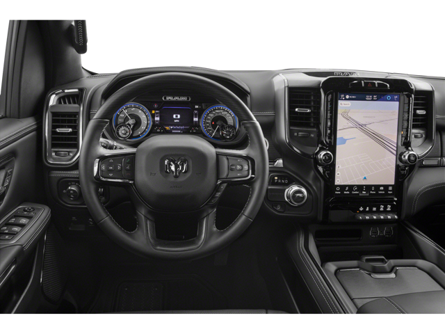 The leather seats in this model are a must for buyers looking for comfort, durability, and style. Bluetooth® technology is built into it, keeping your hands on the steering wheel and your focus on the road. Our dealership has already run the CARFAX report and it is clean. A clean CARFAX is a great asset for resale value in the future. Lane Keep Assist in the vehicle helps maintain safe driving by gently steering to stay within the lane. You'll never again be lost in a crowded city or a country region with the navigation system on this vehicle. This vehicle has a premium sound system installed. This Ram 1500 is pure luxury with a heated steering wheel. The vehicle offers Apple CarPlay for seamless connectivity. Never get into a cold vehicle again with the remote start feature on this model. This Ram 1500 offers Android Auto for seamless smartphone integration.