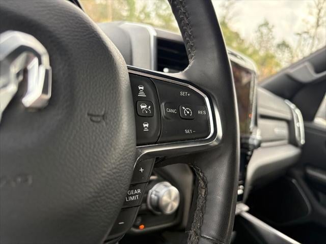 Bluetooth® technology is built into it, keeping your hands on the steering wheel and your focus on the road. The installed navigation system will keep you on the right path. The vehicle's Forward Collision Warning feature alerts drivers to potential front-end collisions. Start this 1/2 ton pickup from inside with remote start. See what's behind you with the back up camera on it. This 1/2 ton pickup is pure luxury with a heated steering wheel. Apple CarPlay: Seamless smartphone integration for the vehicle - stay connected and entertained on the go! This model keeps you comfortable with Auto Climate. This vehicle's Lane Departure Warning keeps you safe by alerting you when you drift from your lane. Good News! This certified CARFAX 1-owner vehicle has only had one owner before you. This Ram 1500 has automated speed control that adjusts to maintain a safe following distance, enhancing highway driving convenience. The leather seats in this vehicle are a must for buyers looking for comfort, durability, and style.